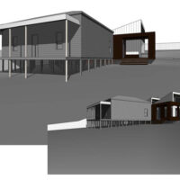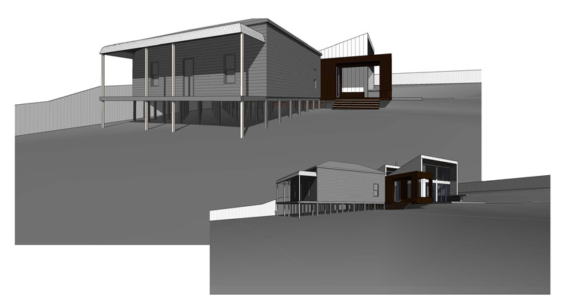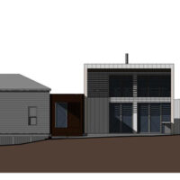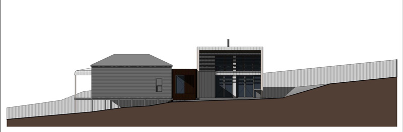 Provided sketch design service for additions to a Victorian weatherboard designed to maximise the winter solar gain with new north facing kitchen, living and dining areas. The timber clad extruded link between the existing house and the new living areas provides a north facing sheltered entry, bathrooms and laundry. The new living area opens to the north and the garden views. Large areas of double glazed north facing glass, internal thermal mass construction with heavily insulated external walls and roof form the basis for the passive solar design strategy.